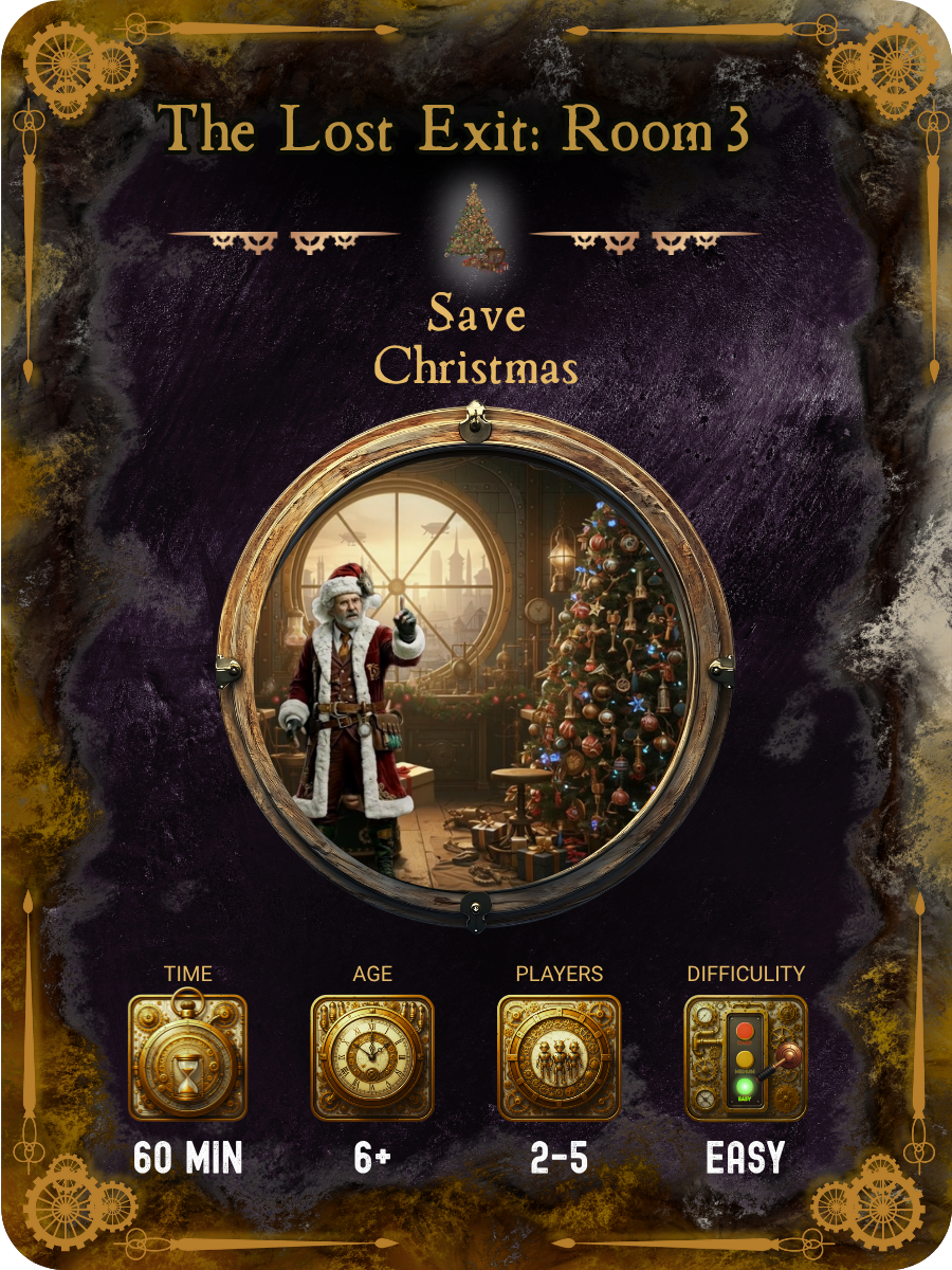 This is a Christmas-themed Escape Room Experience, not a Santa’s Workshop or Santa Visit event.
